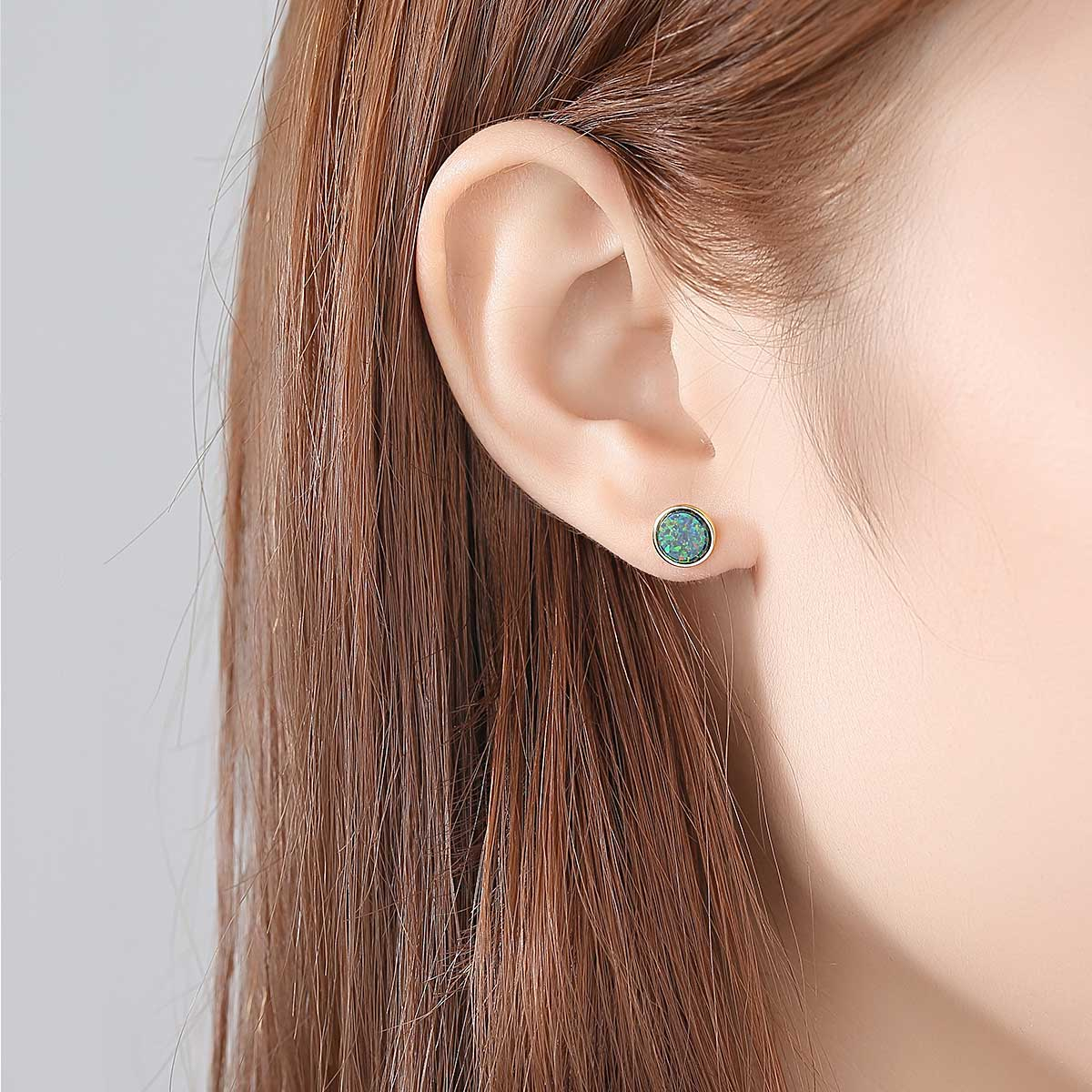 | Classic Round 925 Sterling Silver Opal Stud Earrings | |