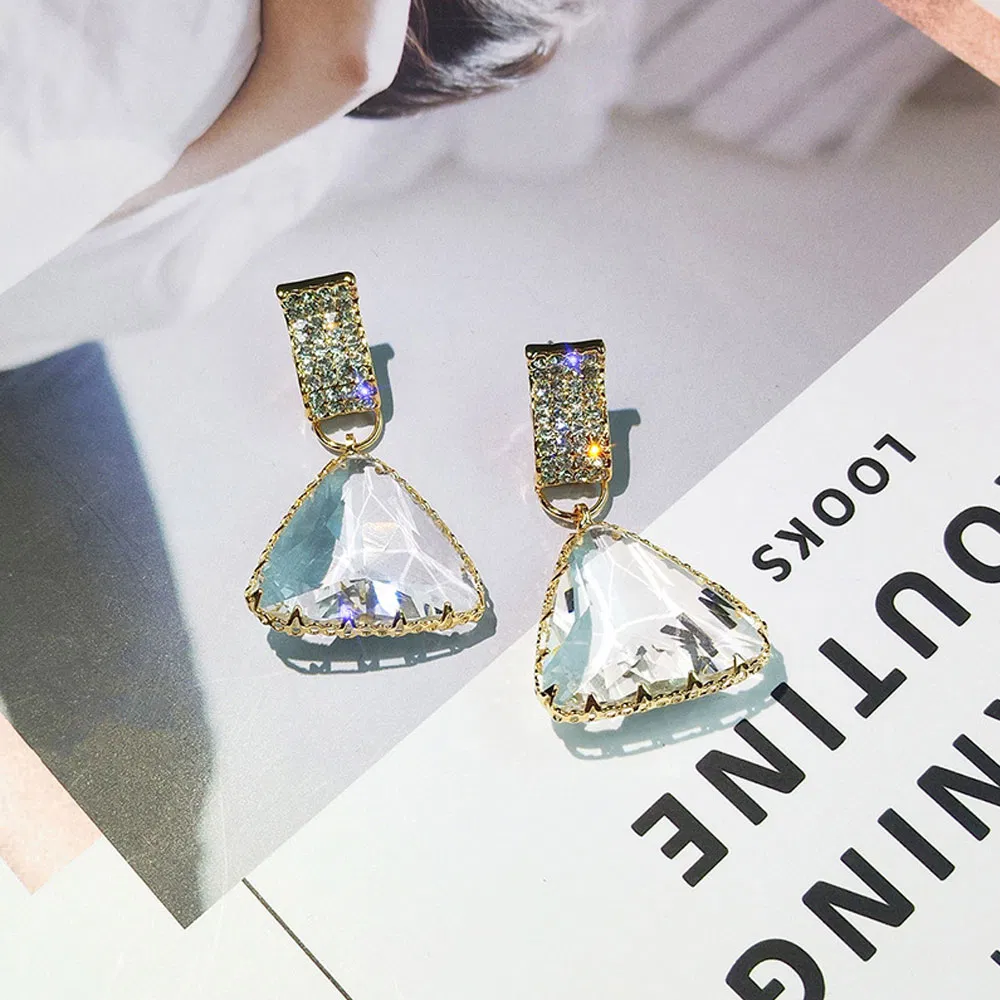 Diamante 925 Sterling Silver Geometric Triangle Crystal Stud Earrings Clear Crystal Waterdrop Stud Earrings for Girls| Product Name | Diamante 925 Sterling Silver Geometric Triangle Crystal Stud Earrings Clear Crystal Waterdrop Stud Earrings for Girls |