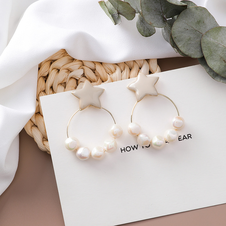 Fashion simple vintage pearl pentagram earrings jewelryItem NO.:D22332Material:AlloySize:as pictureColor:as picturePackaging:1)Individual polybag /with Backing card / with gift box / Customized ,2)Appropriate qty packed into inner box and Carton BoxMOQ:200pcs/styleSample Lead Time:5-7daysProduction ......