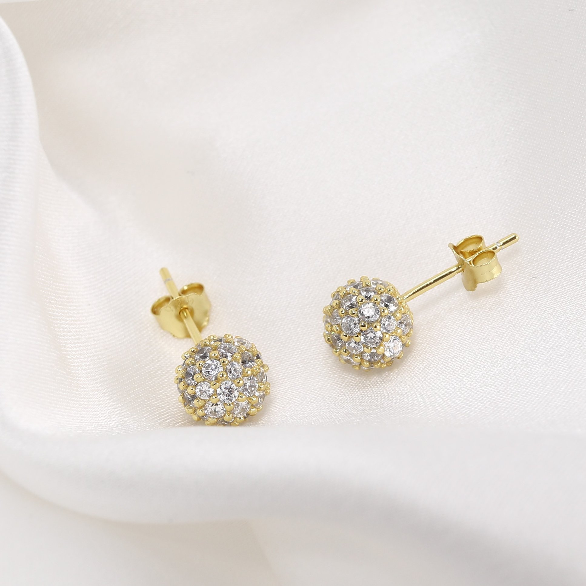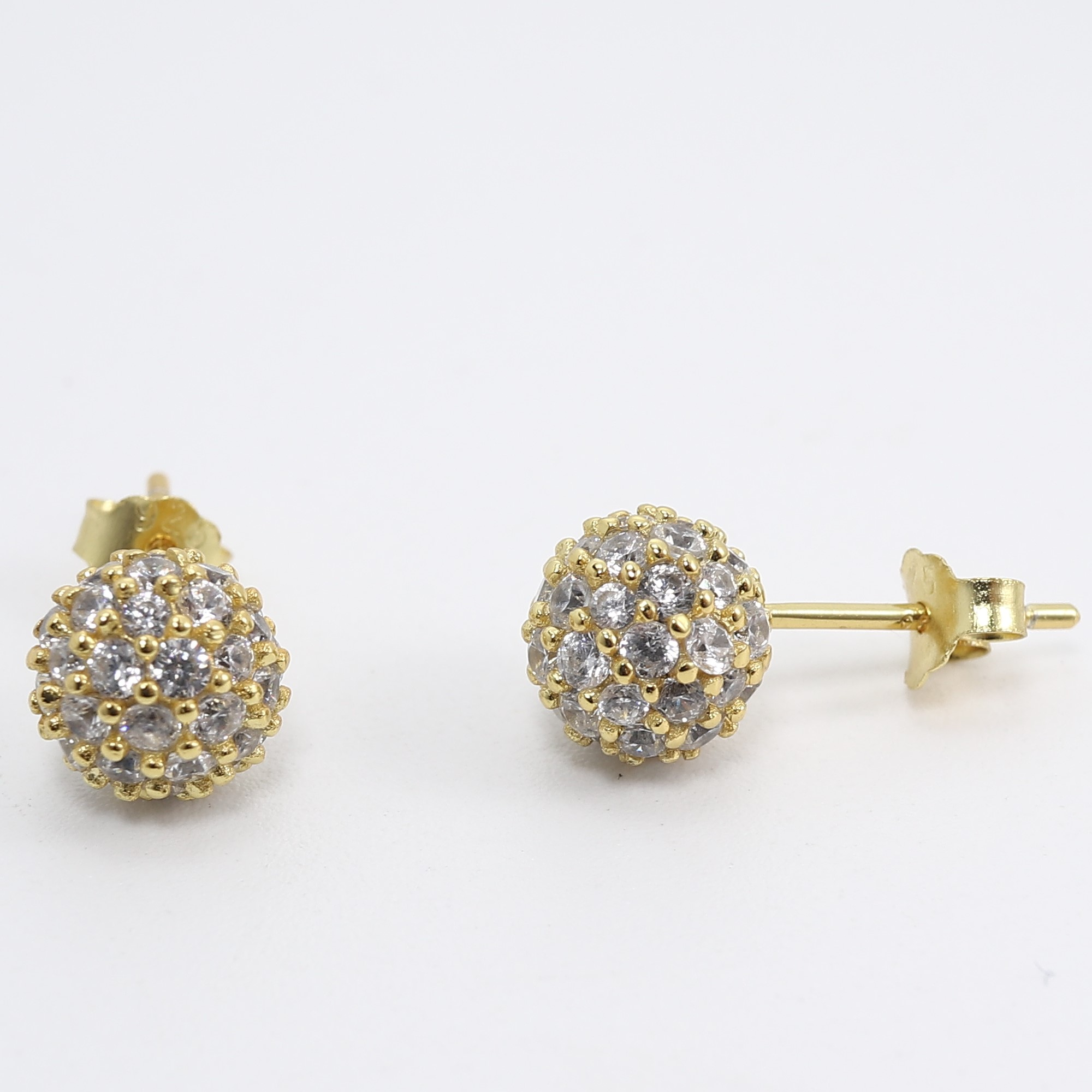 Jewelry Design 925 Silver 5A CZ round 18K Gold Plated earrings women statement sparkle ball earings stud If need higher quality with AAAAA cubic zirconia If need lower price with copper alloy material, If need change CZ to other stones, such as, sapphire,opal, emerald, etc... please contact onlin......