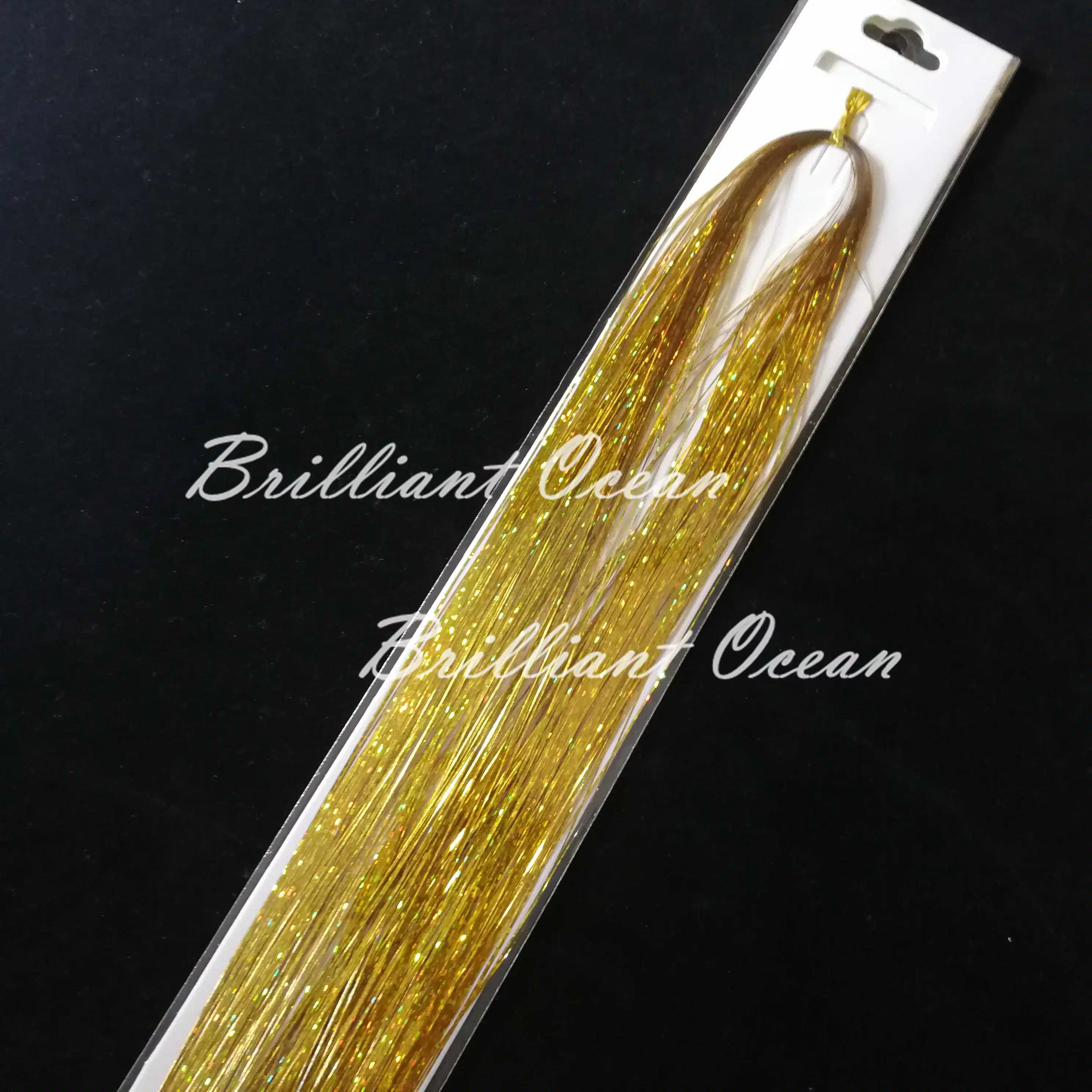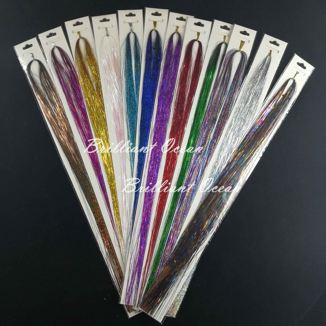 The hair tinsel is easy to measure spool. Cut off desired length and tie to one strand of hair near scalp. It is used for dress up, parties, sporting events, dancing stage,beauty salons and so on. It suits to all hair types. It's a fashion decoration for women and girls of all ages.