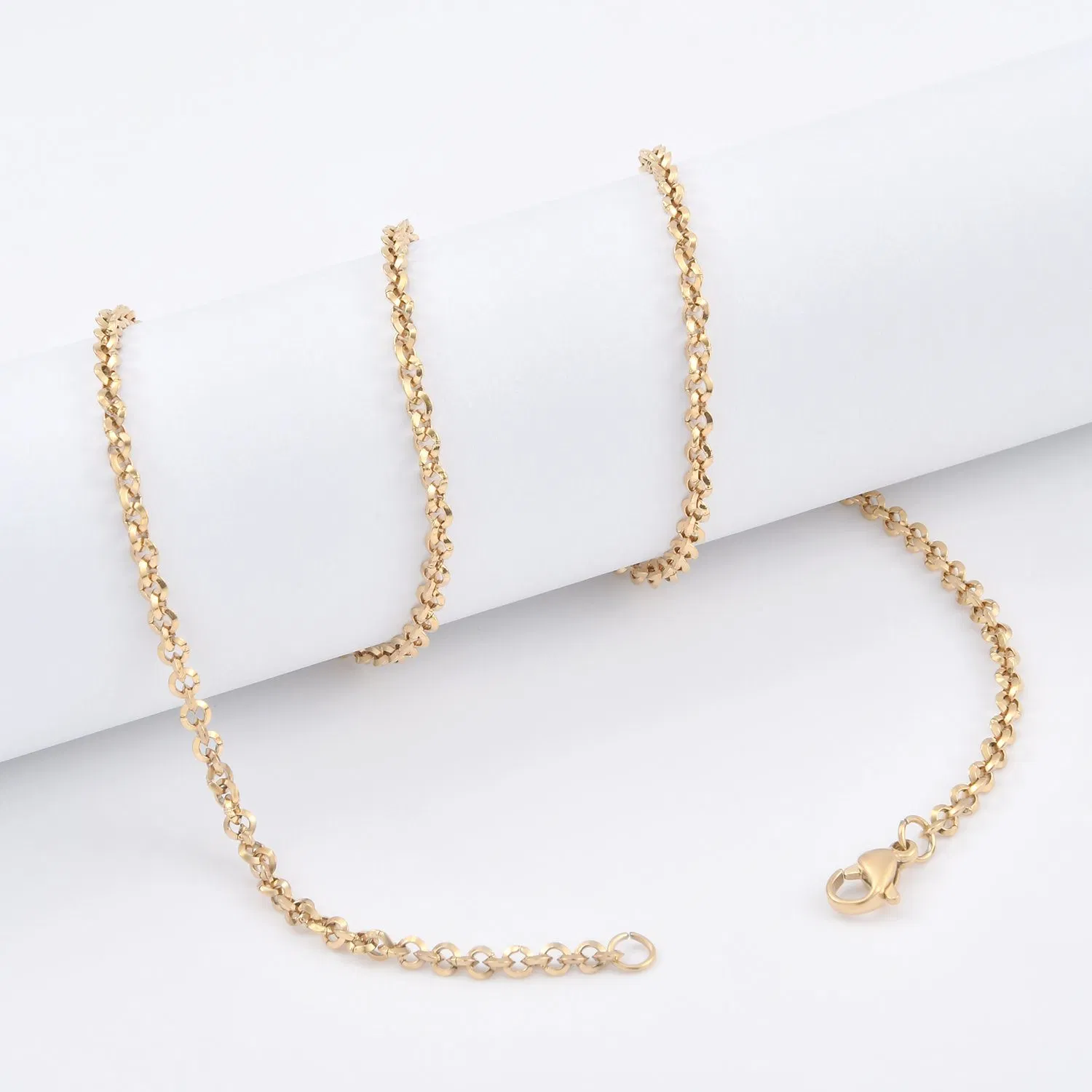 Our Surgical Stainless Steel Chain is made from grade 316 steel, also referred to as 'marine grade', meaning it won't tarnish or rust. It is a darker, shimmering steel perfect for dramatic looks.