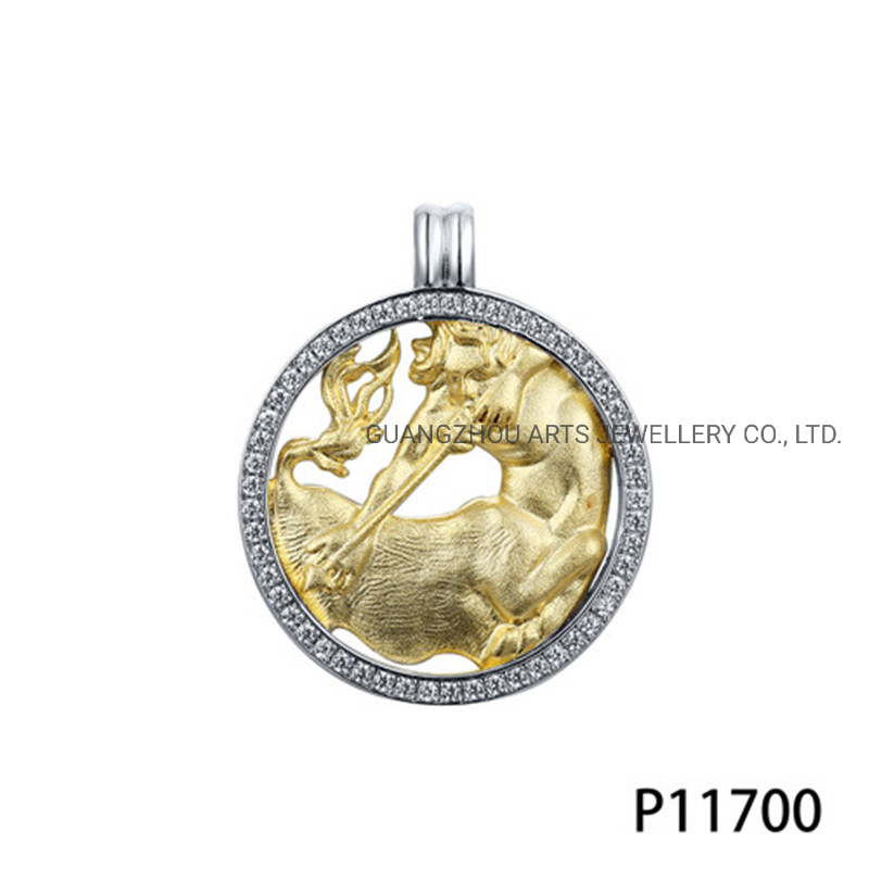 Gold Plating Horoscope Symbols in the Round Silver Pendant Product information: 1.Material/Metal:925 Silver/Copper brass2.Finish/Plating:1)Rhodium plating/Silver plating 2)Gold plating 3)Rose gold plating 4)Others3.Stone/Gems Type:AAA/5A/8H Cubic Zirconia/other Semi-precious stone4.Stone Color:Wh......