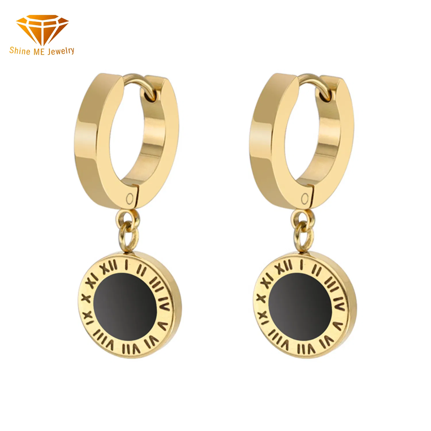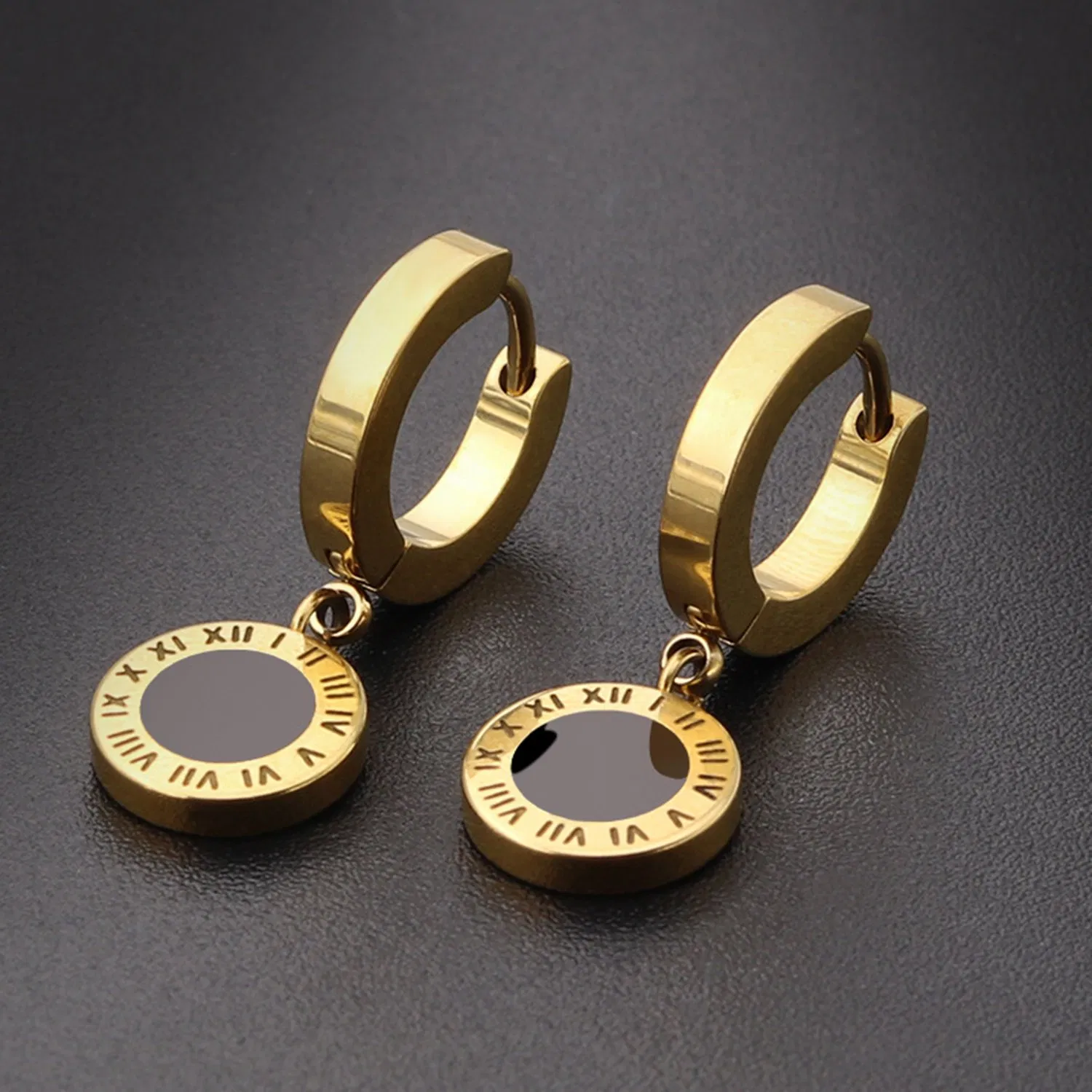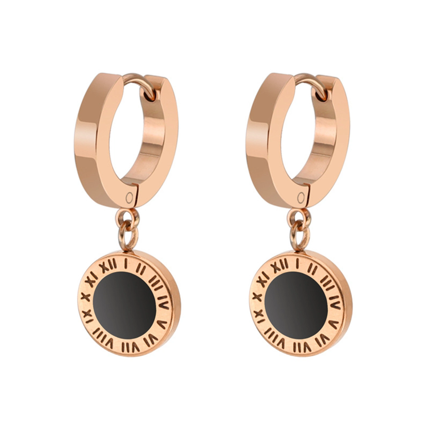| Item Name | European and American new titanium steel Roman numeral symbol earrings stainless steel rose gold round cake pendant earrings for men |