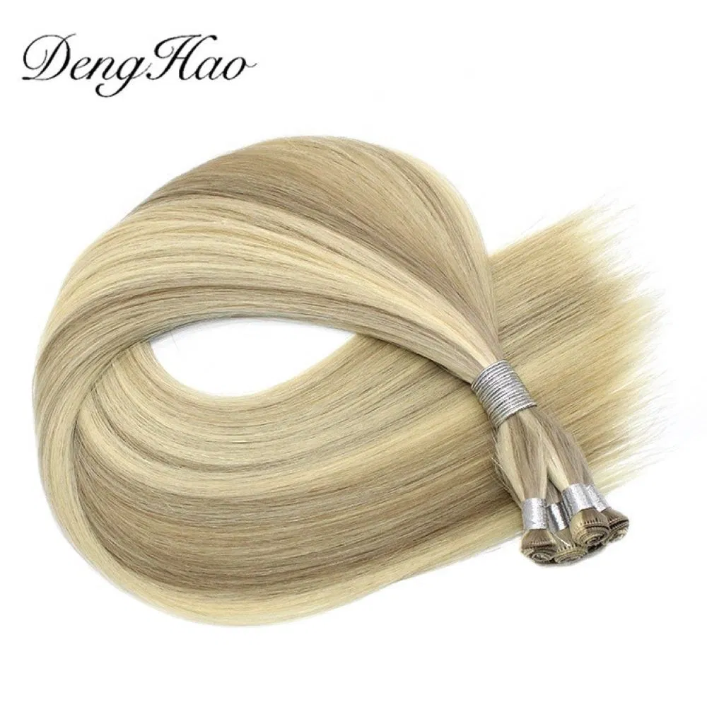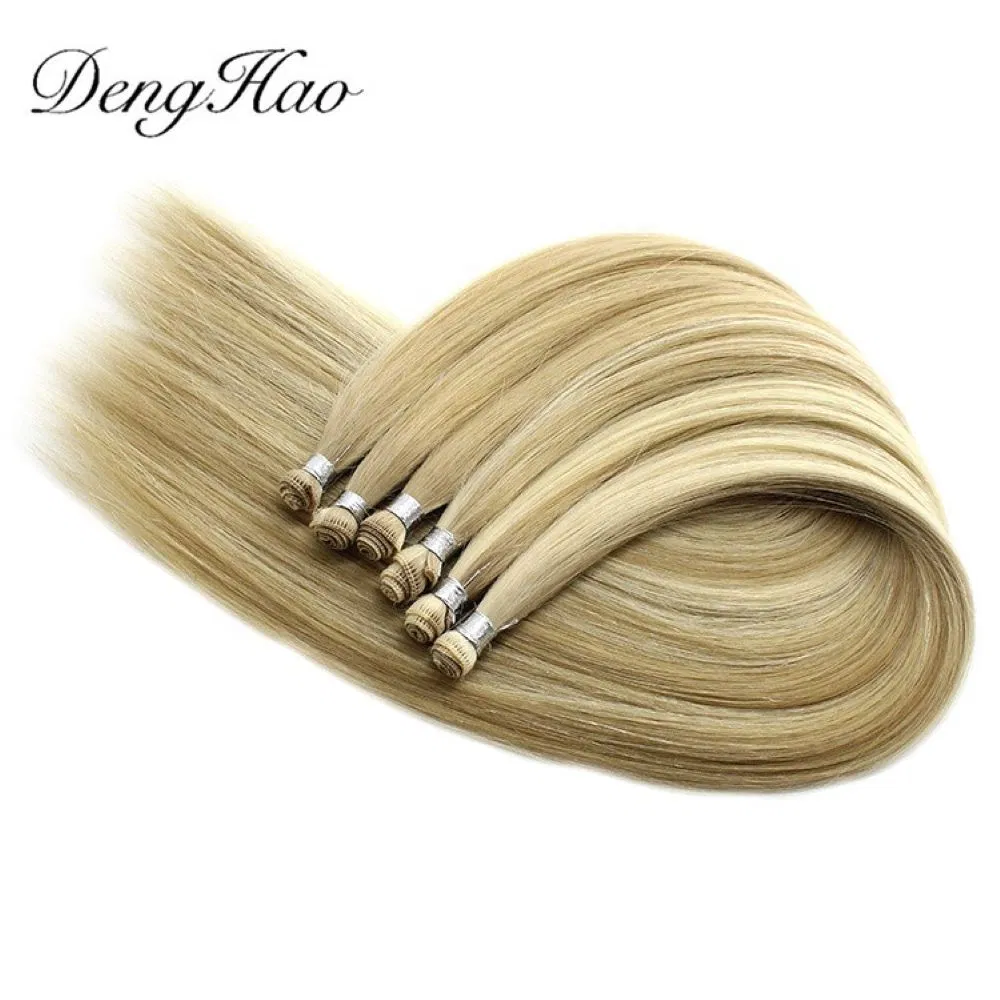Denghao 100% Brazilian Virgin Human Remy Hair Hand Tied Weft Extensions with Cuticle Aligned