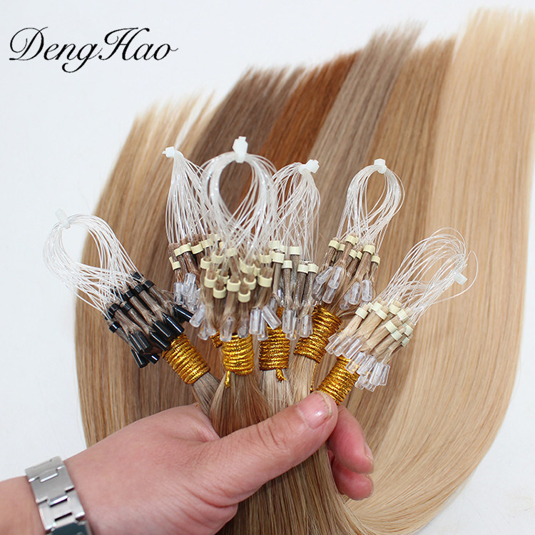 ItemDenghao Factory Double Drawn 100% Human Micro Ring HairHair Material100% Remy Human HairQuality grade9A Grade Double Drown Thickness Ends Length14"-26" are availableWeight80g 100g 120g 140g 160g 180g 200g 220g 240g 260g 300g/pack as your requirementColorDark color-- #1,#1B,#2,#3,#4,......