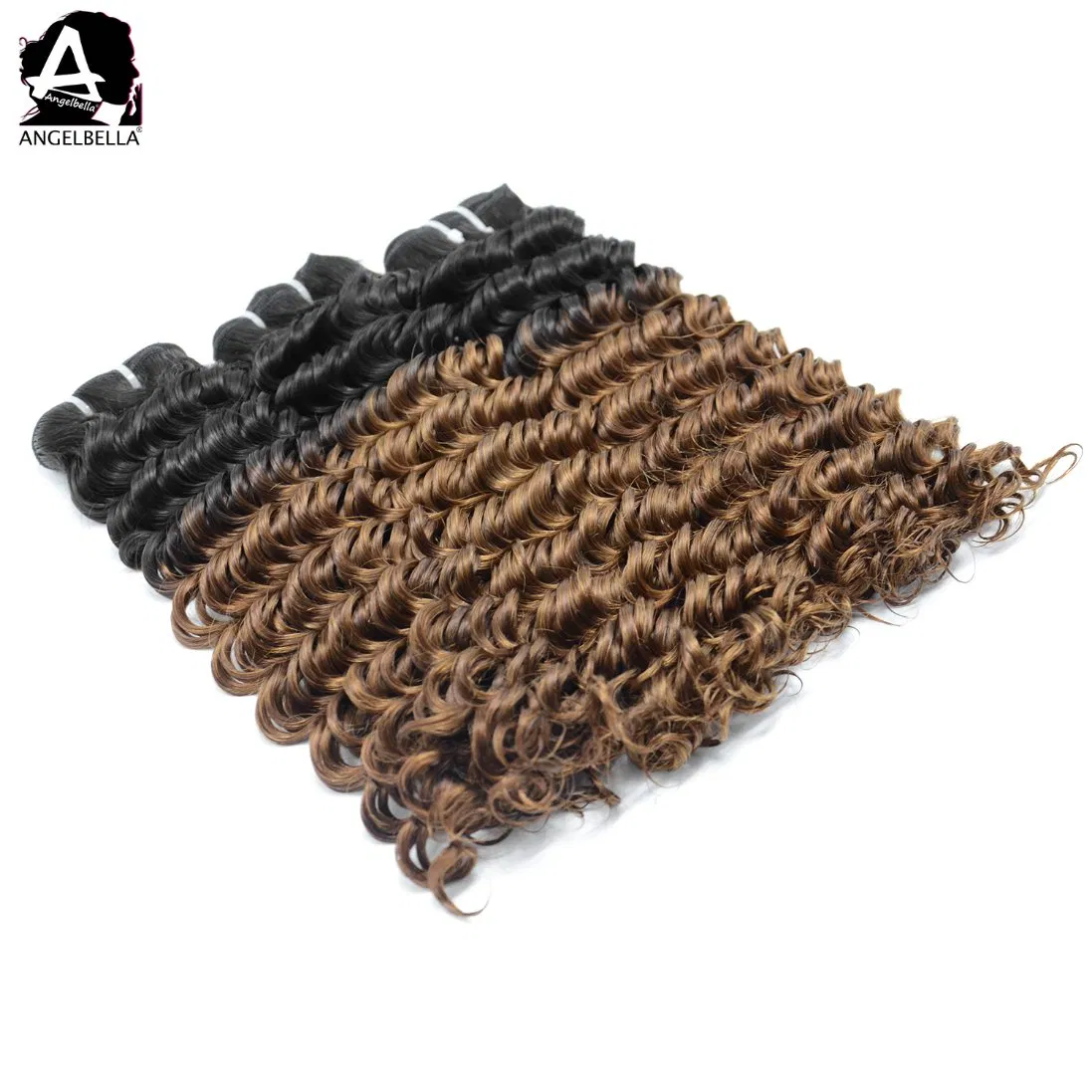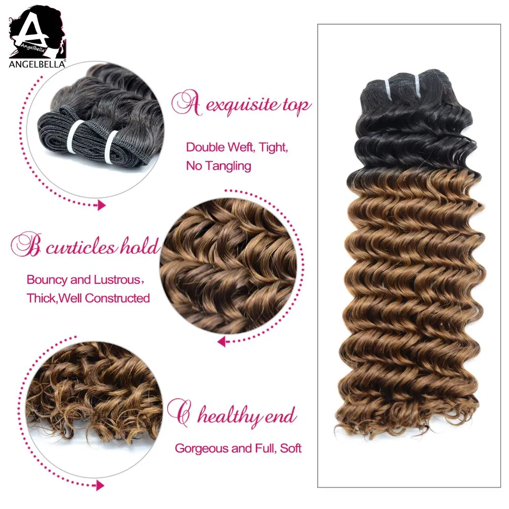 | Angelbella 100% Human Hair Weaving Ombre Deep Curly Super Double Drawn Hair Bundles Weave | |