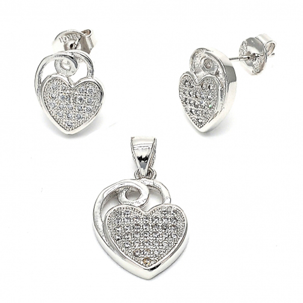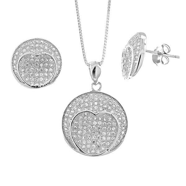 Heart 925 Sterling Silver Jewelry Set Micro Pave Setting